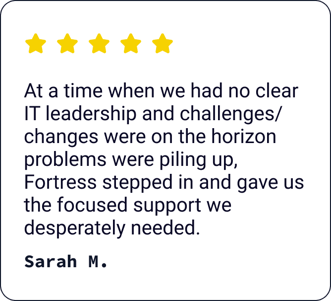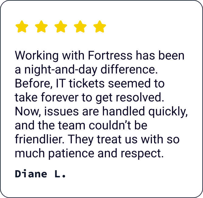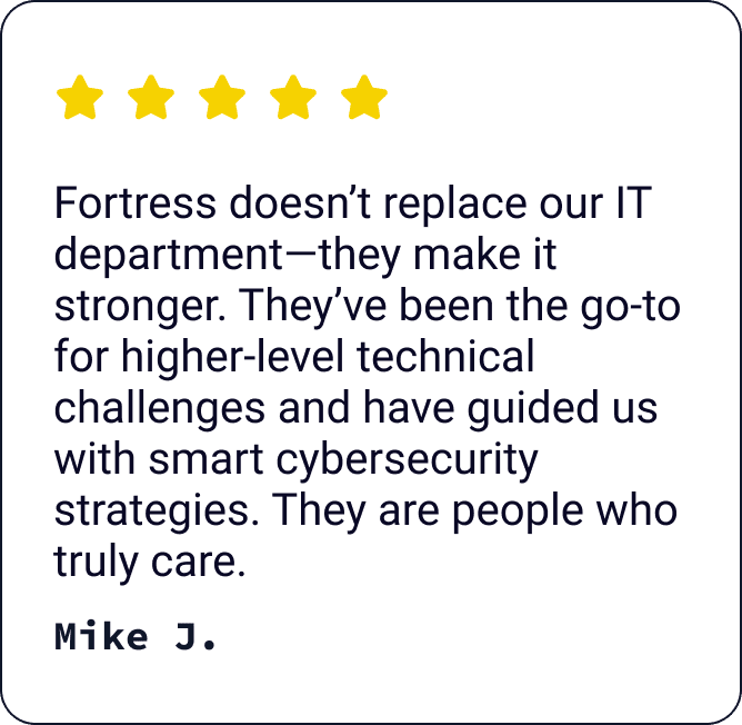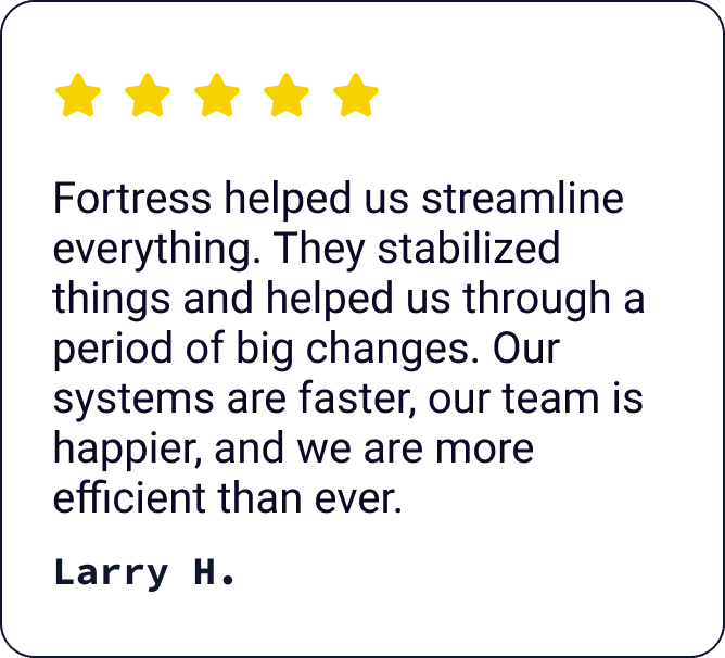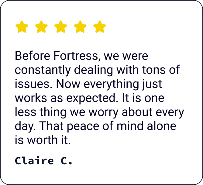 When your systems fail, your team stops. Revenue stalls. Stress spikes. And suddenly, you are dealing with problems you never signed up for. Fortress Networks keeps your business running smoothly, securely, and without interruption.